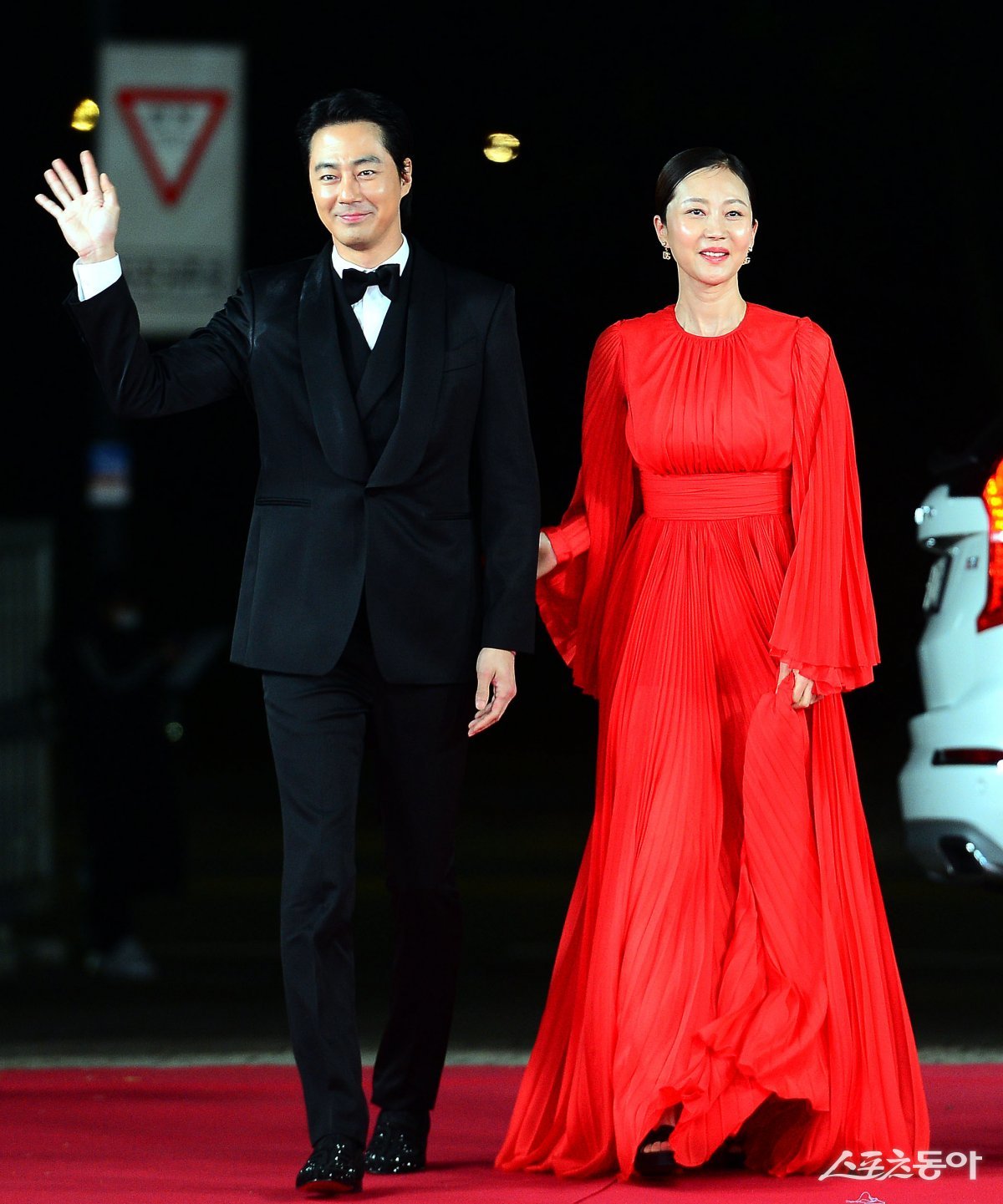 배우 조인성, 염정아가 24일 서울 영등포구 여의도 KBS홀에서 열린 ‘제44회 청룡영화상’ 레드카펫 행사에 참석해 입장하고 있다.