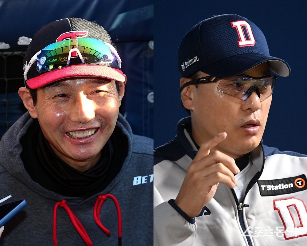 LG 염경엽 감독(왼쪽), 두산 이승엽 감독. 스포츠동아DB