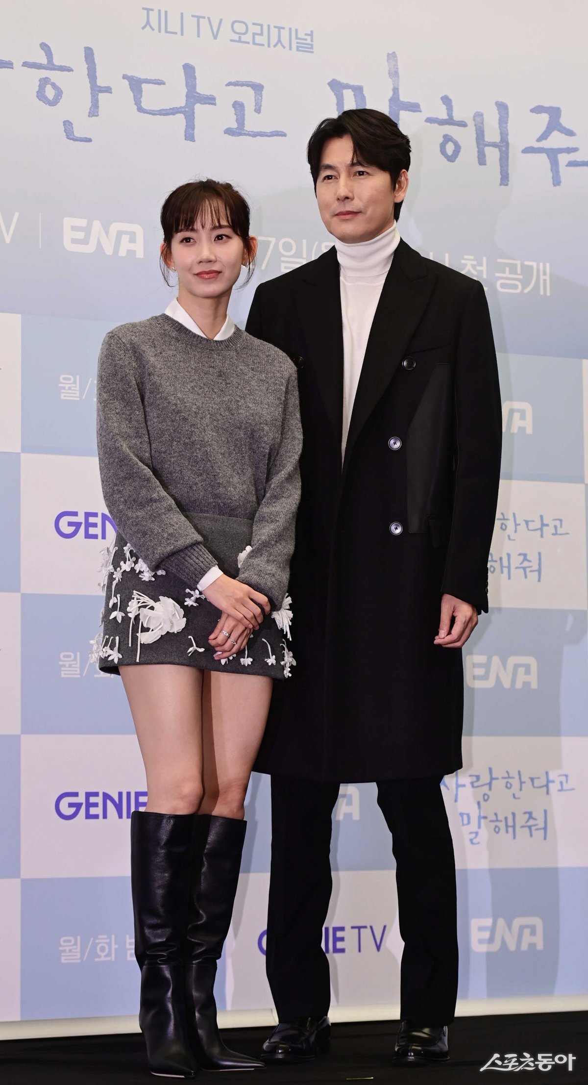 배우 신현빈, 정우성이 27일 서울 마포구 상암동 스탠포드호텔 서울에서 열린 지니TV 오리지널 ‘사랑한다고 말해줘’ 제작발표회에서 포즈를 취하고 있다.