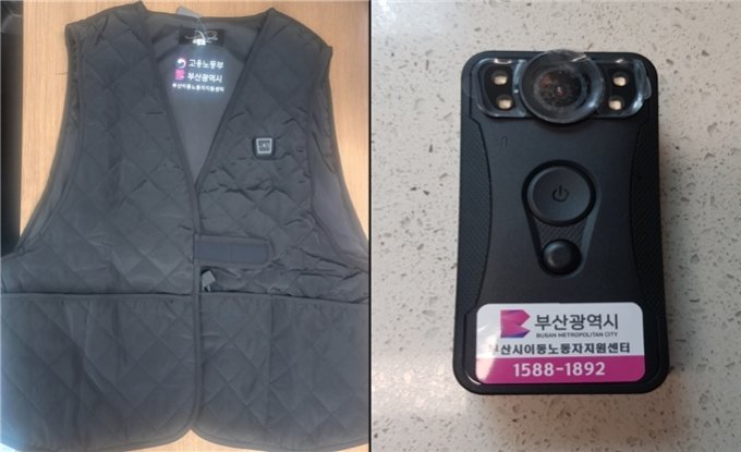 발열조끼(왼쪽)와 보디캠. 사진제공ㅣ부산시