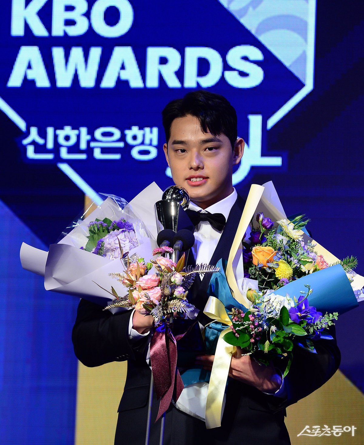 27일 서울 중구 소공동 웨스틴조선호텔에서 ‘2023 신한은행 SOL KBO 시상식’이 열렸다. KBO 신인상을 수상한 한화 문동주가 소감을 밝히고 있다.