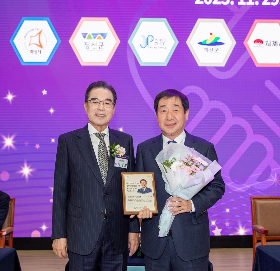 이재영 증평군수가 지난 29일 서울 농협중앙회 대강당에서 2023 ‘귀농 활성화 선도인상(像)’ 수상의 영예를 안았다. 사진제공ㅣ증평군