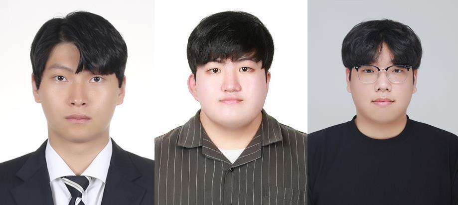 ‘2023년 한국산업융합학회 추계 학술대회’에서 우수논문상을 받은 차상민(왼쪽), 이동규(가운데), 허준영 학생. 사진제공ㅣ동의과학대학교