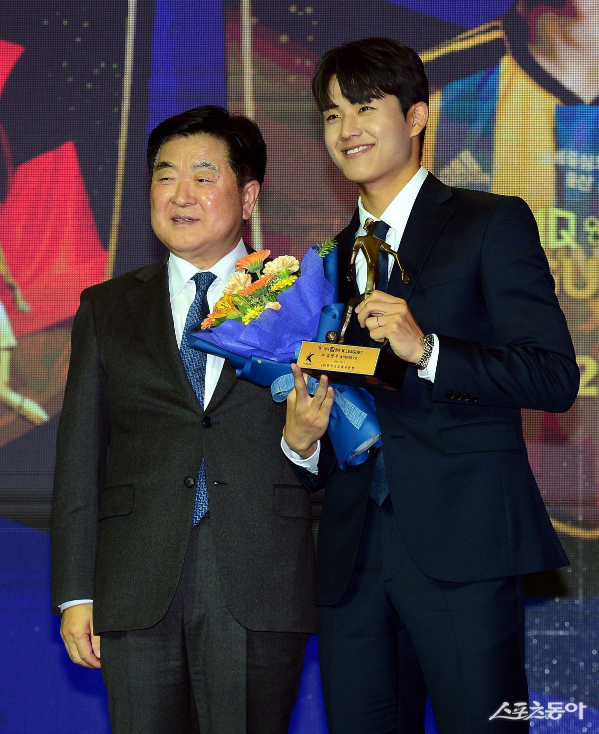4일 서울 송파구 롯데호텔 월드에서 ‘2023 하나원큐 K리그 대상’ 시상식이 열렸다. K리그1 베스트11 DF를 수상한 설영우(울산현대)가 한국프로축구연맹 권오갑 총재와 기념촬영을 하고 있다.