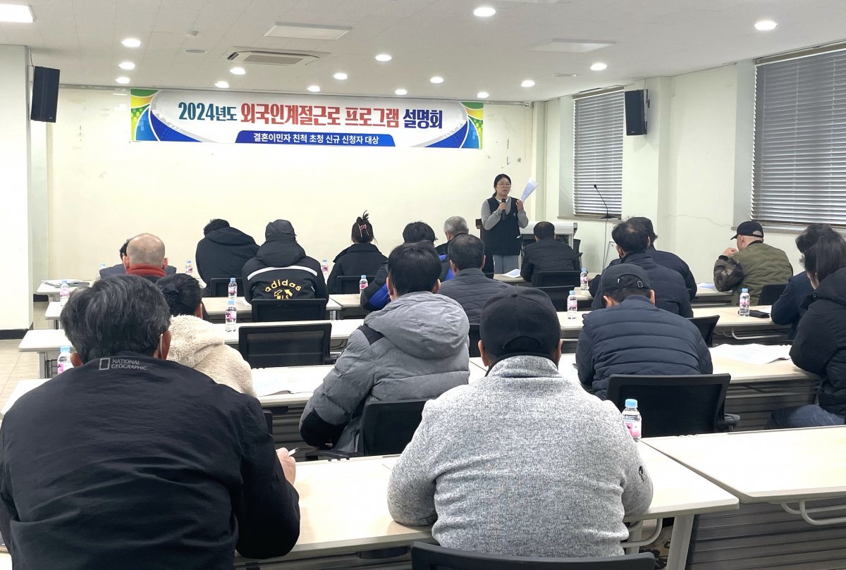 한편, 군은 12월 6일에 2024년 외국인 계절근로 프로그램 설명회를 개최하여 결혼이민자 친척 초청 신규 신청 농가를 대상으로 비자 발급에 필요한 제출 서류 등을 안내하고, 12월 8일까지는 MOU 방식 신청 농가를 대상으로 표준근로계약서 등 서류를 접수하며 본격적으로 내년도 계절근로자 비자 심사 준비에 들어간다.