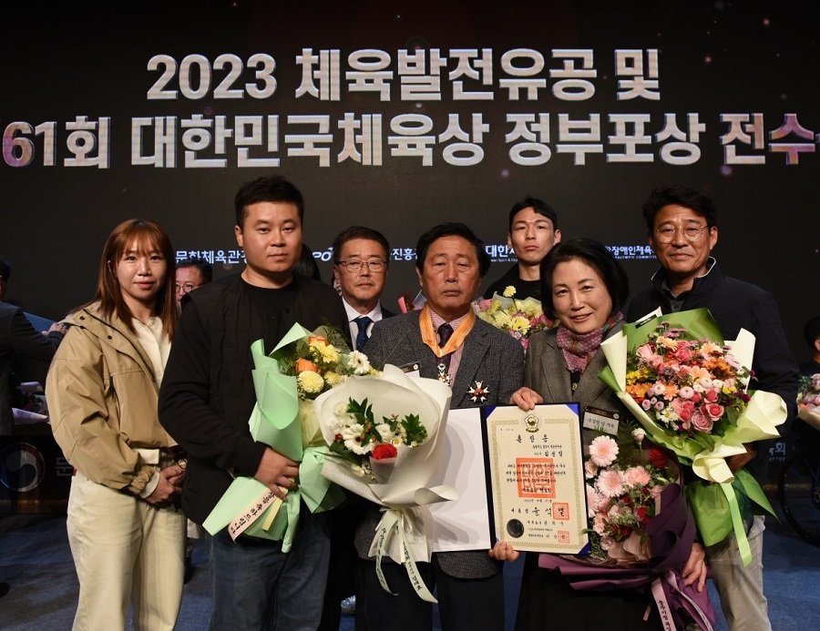 2023년 충주시청 직장운동경기부 역대 최다 성과 거뒀다. (김성일 감독 훈장 서훈). 사진제공ㅣ충주시청