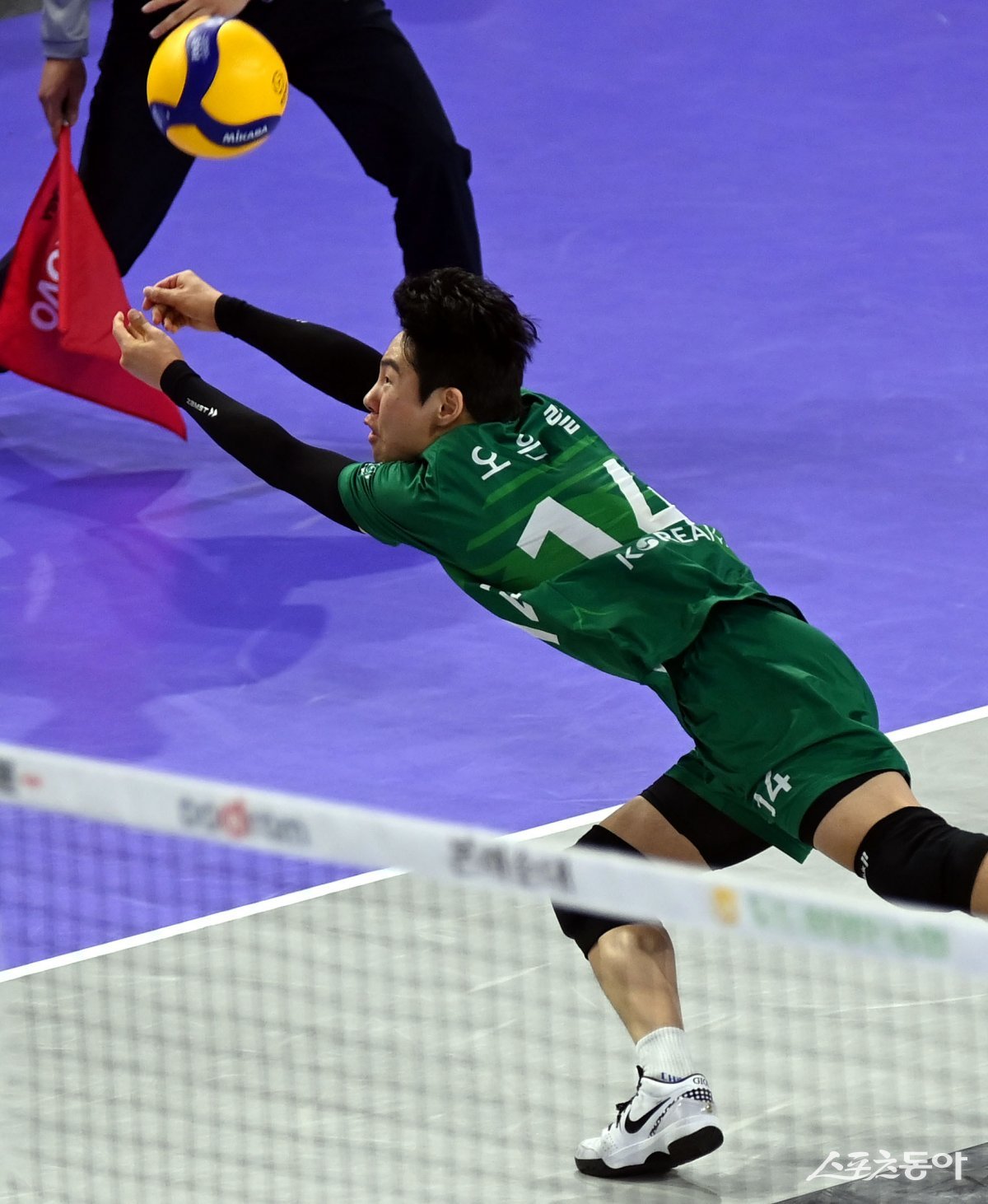 17일 인천 계양체육관에서 ‘2023-2024 도드람 V리그’ 인천 대한항공과 천안 현대캐피탈의 남자부 경기가 열렸다. 대한항공 오은렬이 수비를 펼치고 있다.