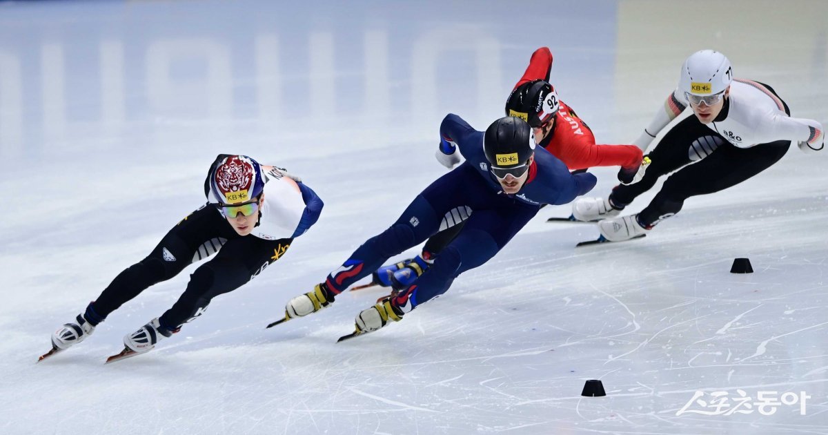 17일 서울 목동종합운동장 목동아이스링크에서 열린 ‘2023-2024 국제빙상연맹(ISU) 쇼트트랙 월드컵’ 4차 대회에서 남자 1500m 패자부활전 준준결승에 출전한 한국 장성우가 질주하고 있다.