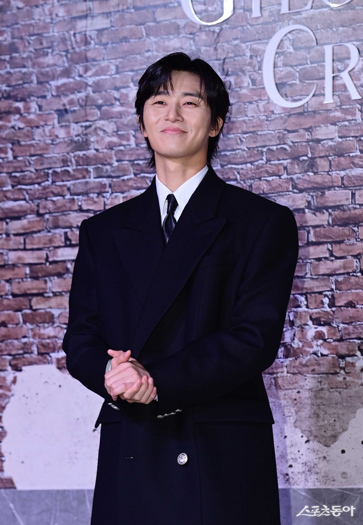 배우 박서준이 19일 서울 용산구 레이어20스튜디오에서 열린 넷플릭스 시리즈 ‘경성크리처’ 제작발표회에서 포즈를 취하고 있다.