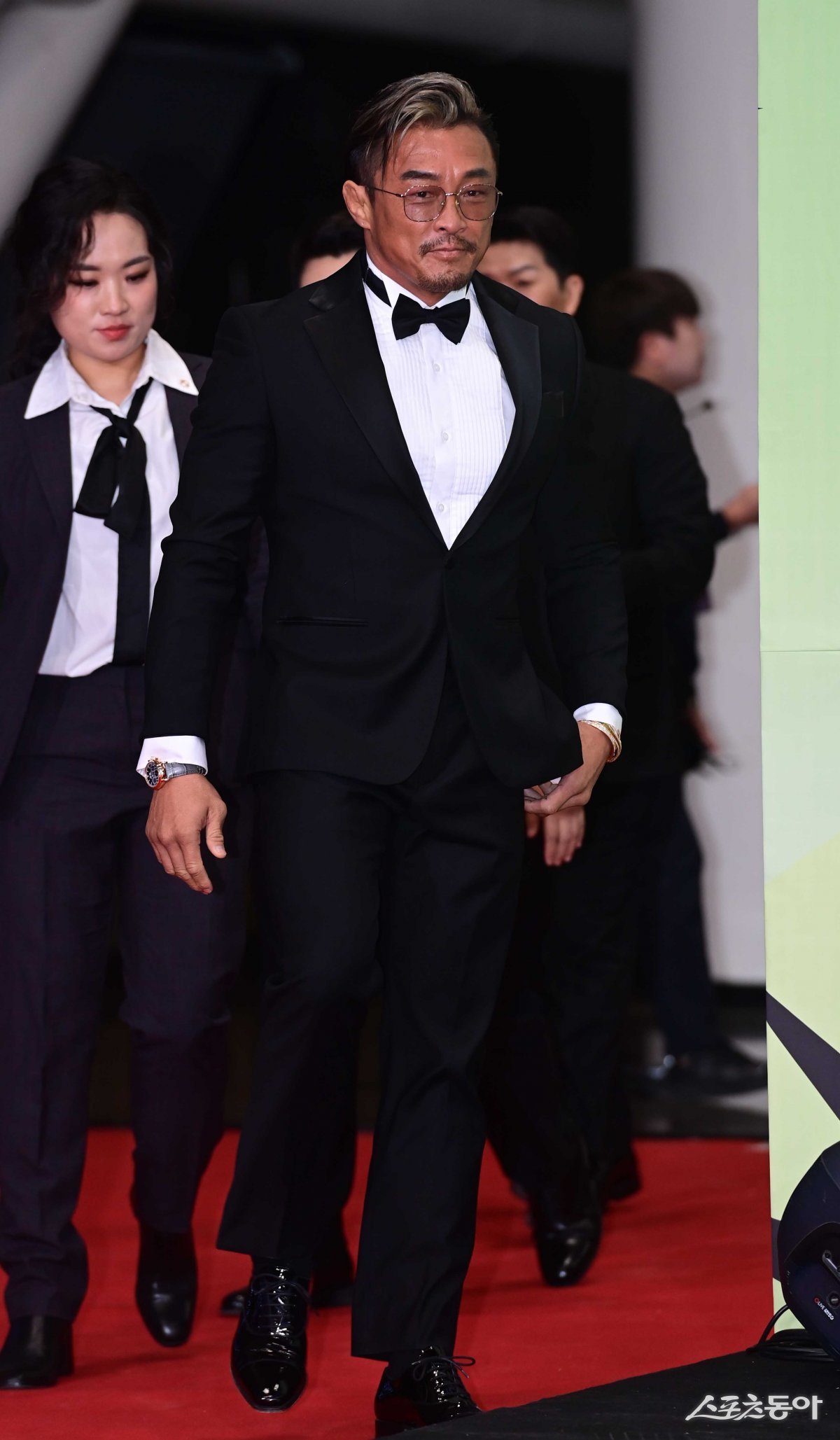 방송인 추성훈이 23일 서울 영등포구 여의도동 KBS신관 공개홀에서 열린 ‘2023 KBS 연예대상’ 포토월에서 무대에 오르고 있다.