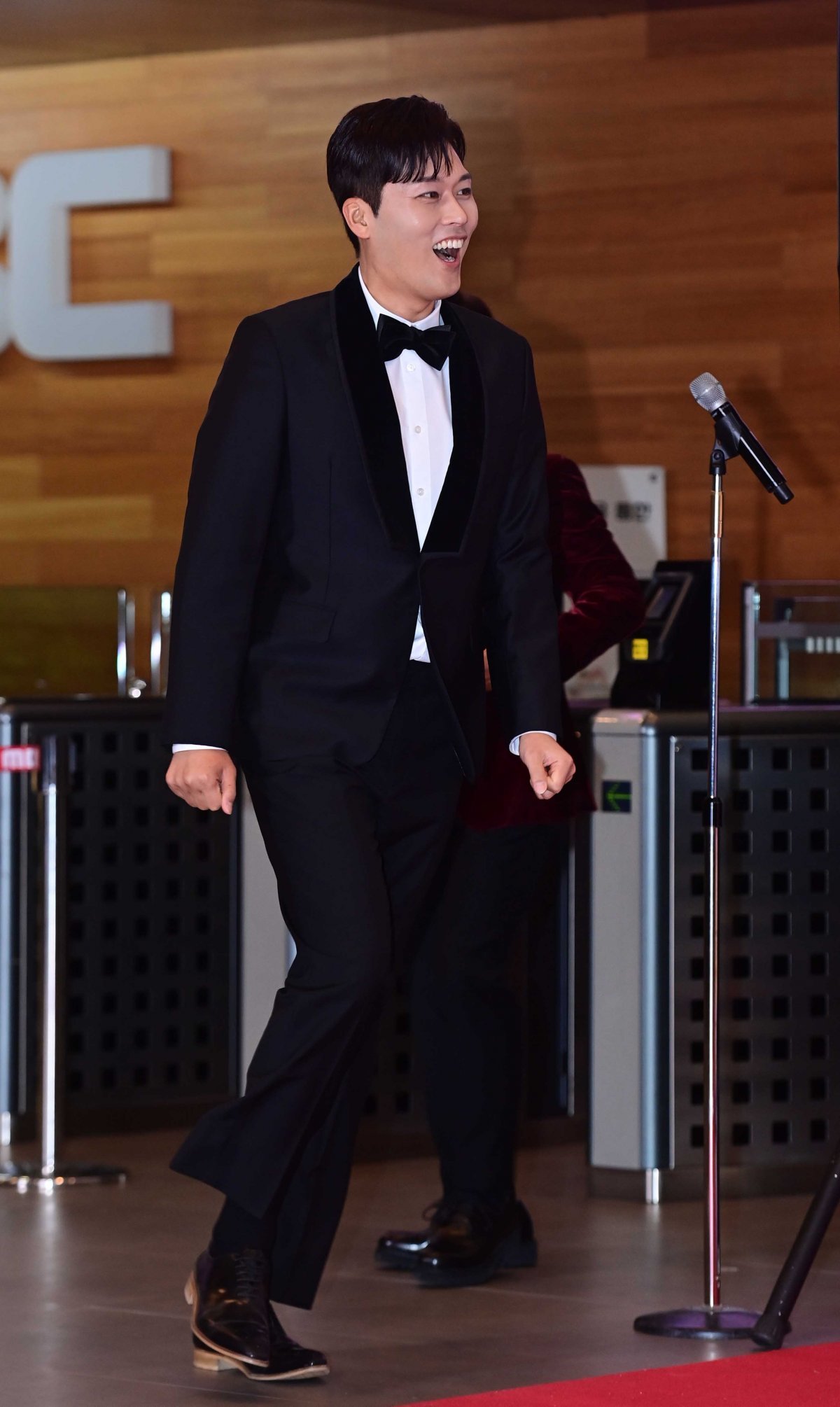 방송인 김일중이 29일 서울 마포구 상암동 MBC미디어센터에서 열린 ‘2023 MBC 방송연예대상’ 포토월 무대에 오르고 있다.