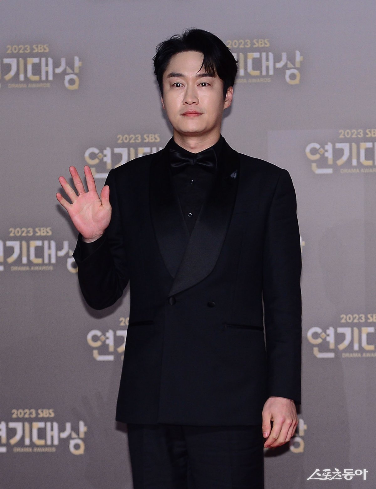 배우 오의식이 29일 서울 마포구 상암동 SBS프리즘타워에서 열린 ‘2023 SBS 연기대상’ 레드카펫 행사에 참석해 포즈를 취하고 있다.