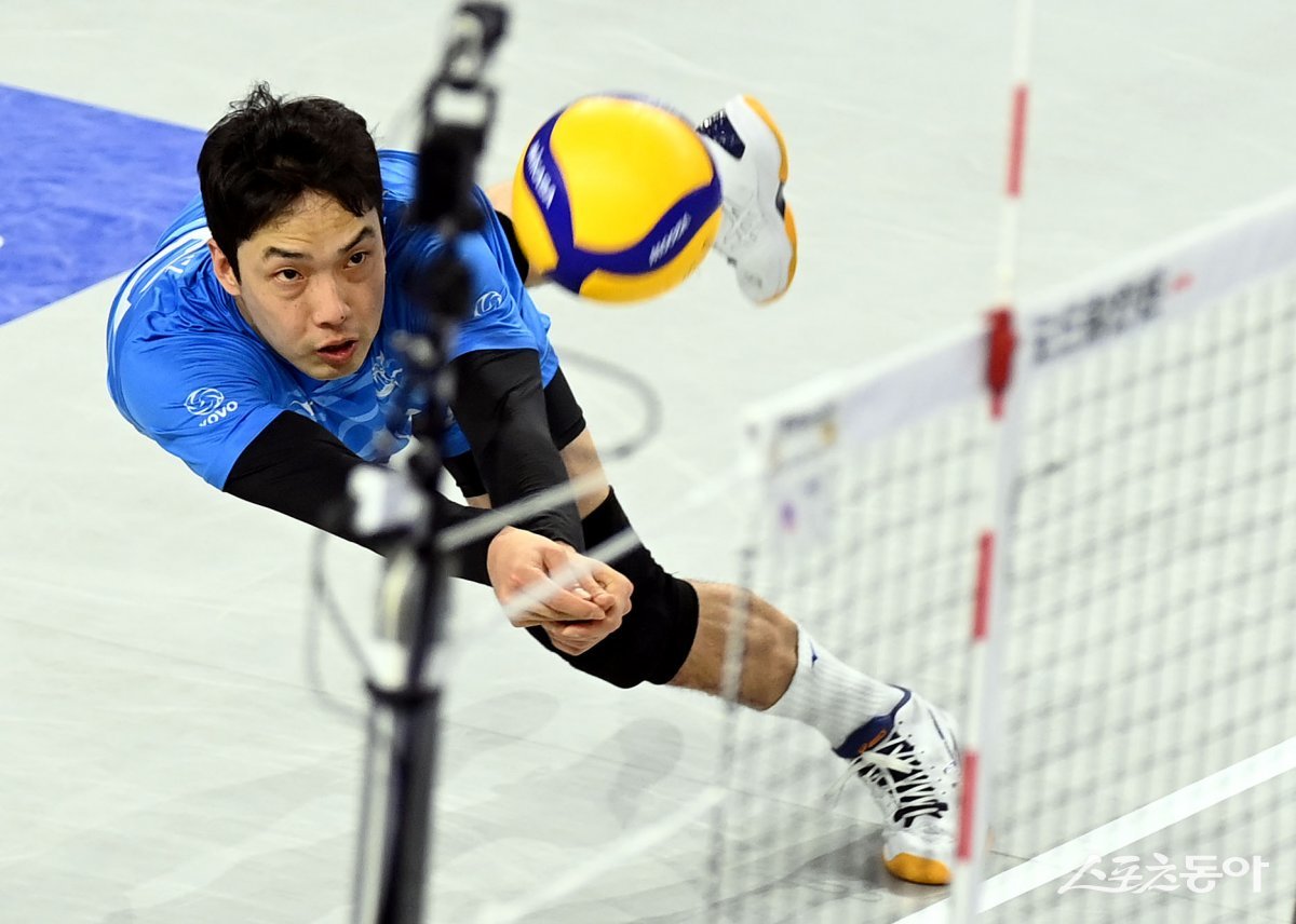 1일 인천 계양체육관에서 ‘2023-2024 도드람 V리그’ 인천 대한항공과 수원 한국전력의 남자부 경기가 열렸다. 대한항공 정성민이 수비를 펼치고 있다.