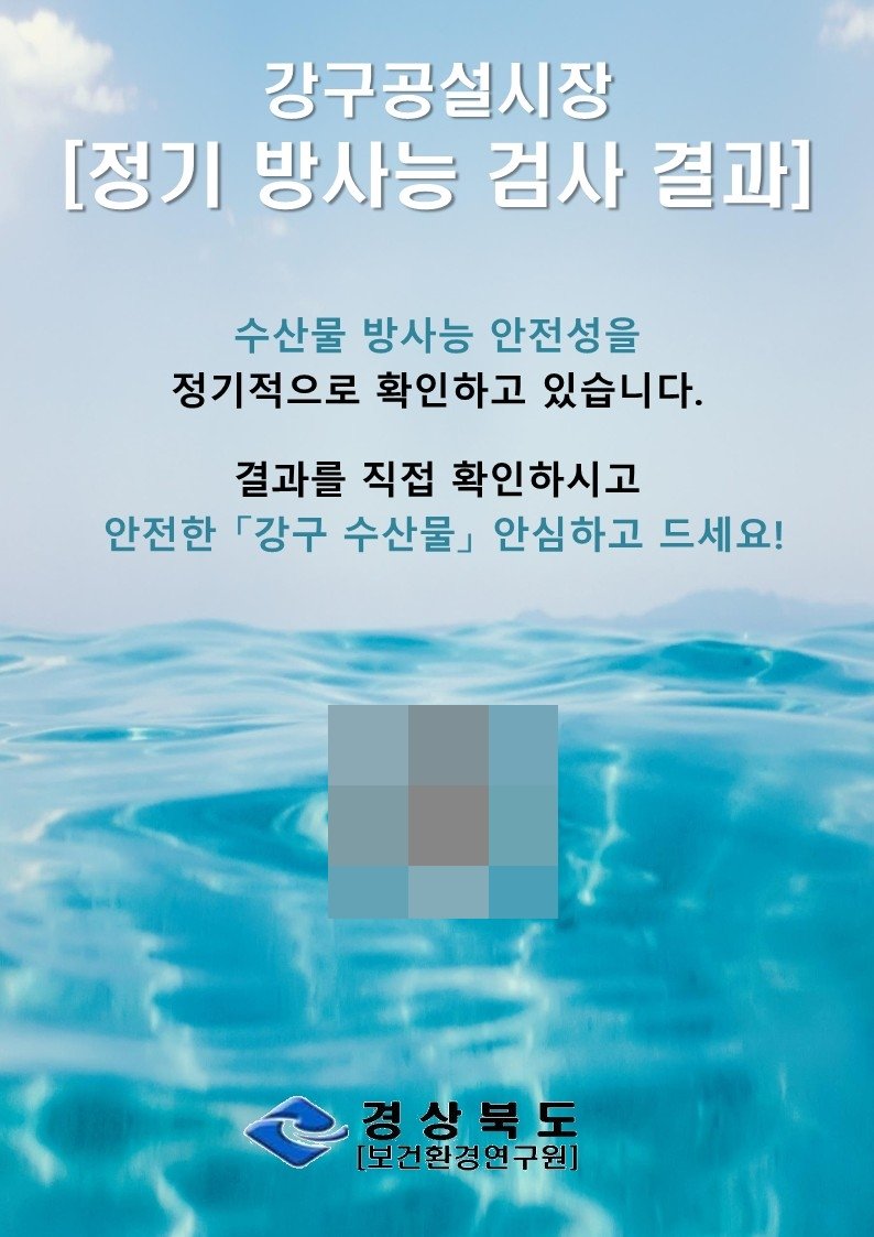 한편 수산물 소비 위축이 우려됨에 따라 경북 동해안 거점 수산시장 상인연합회와 합동으로 시장 특산품 및 다소비 수산물 방사능 검사를 실시, 수산물 안전성 홍보를 위한 자료(성적서, QR코드)를 제공했다.