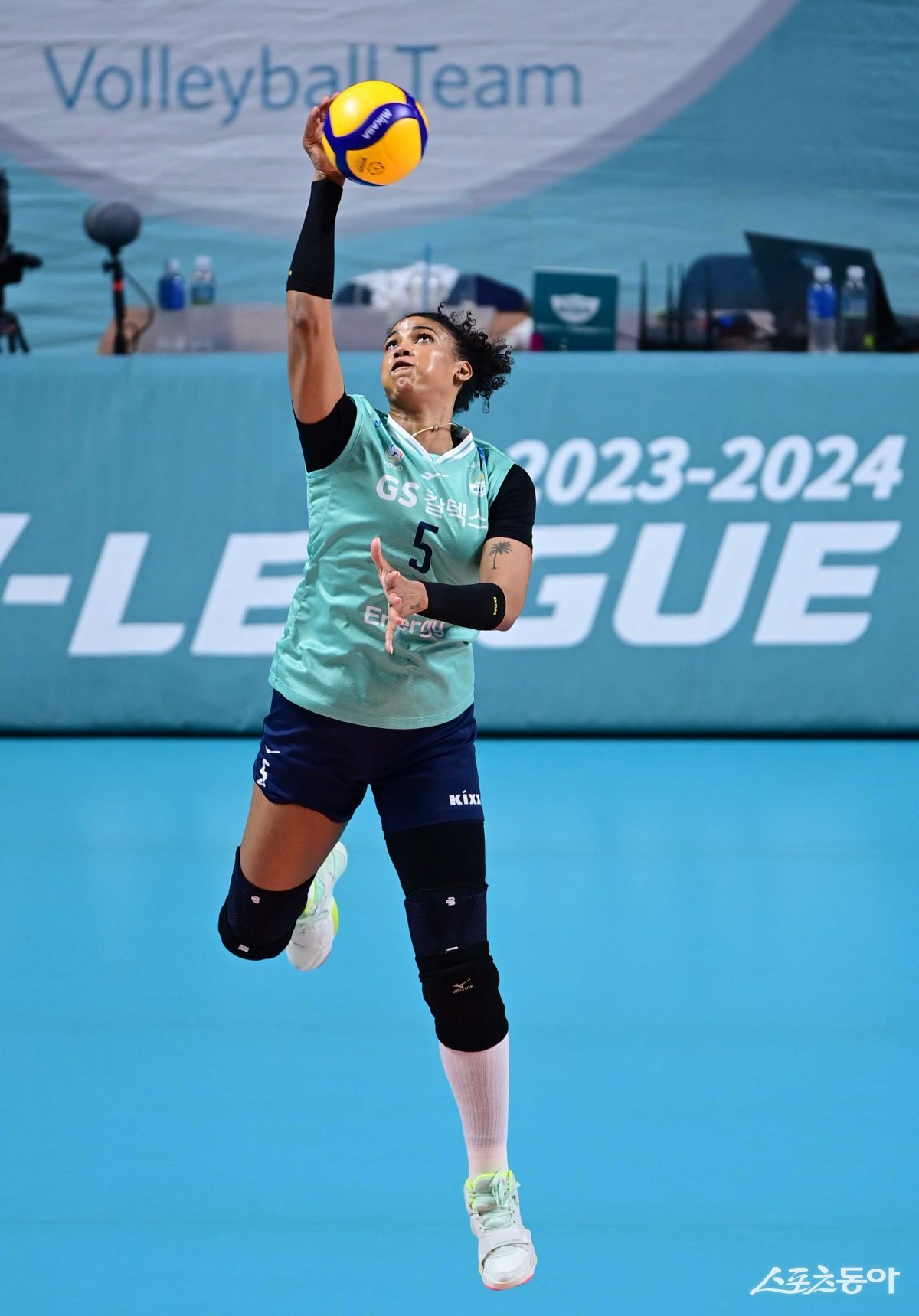 2일 서울 장충체육관에서 열린 ‘도드람 2023-2024 V리그’ 여자부 서울 GS칼텍스와 광주 페퍼저축은행의 경기에서 GS칼텍스 실바가 서브를 하고 있다.