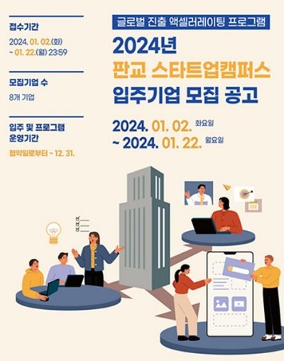 엑셀러레이터 와이앤아처㈜가 글로벌 엑셀러레이팅 프로그램의 일환으로 ‘2024 판교 스타트업 캠퍼스 글로벌센터 입주기업’을 모집한다고 밝혔다.