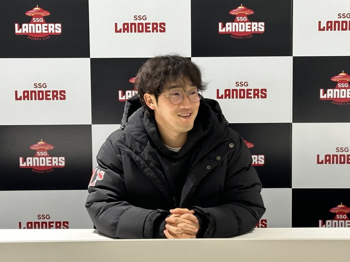 SSG 박종훈이 3일 인천SSG랜더스필드에서 취재진과 만나 자신의 2024시즌 계획을 밝히고 있다. 사진제공 | SSG 랜더스
