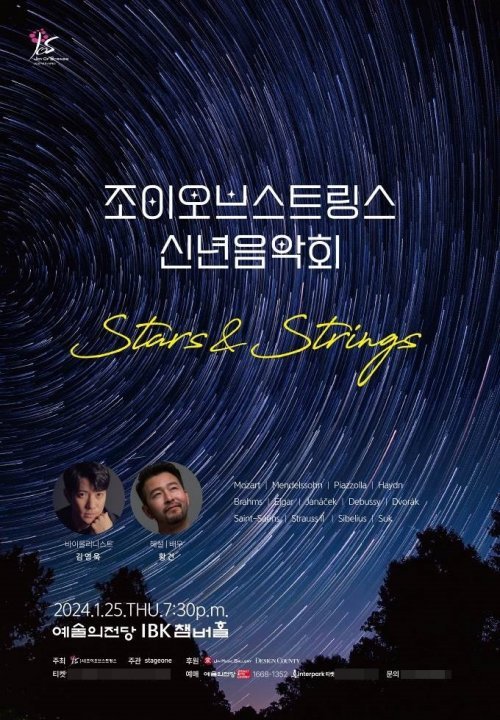 국내 대표 현악 앙상블 조이오브스트링스가 2024년 새해를 맞아 1월 25일(목) 오후 7시 30분 서울 서초동 예술의전당 IBK챔버홀에서 신년음악회 ‘Stars & Strings’를 개최한다. 아름다운 현악 선율에 내레이션과 영상이 더해진 한 편의 드라마 콘서트