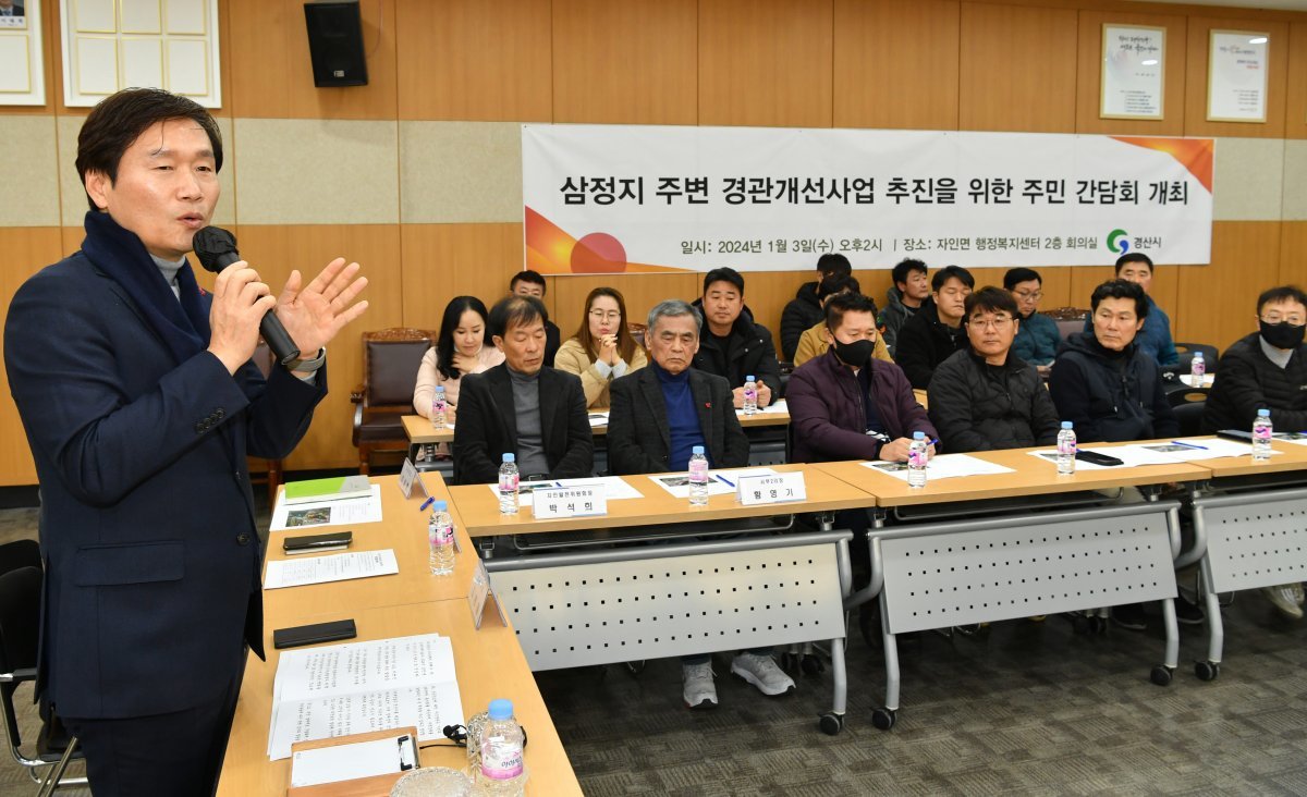 경산시는 지난 3일 자인면 행정복지센터 회의실에서 ‘삼정지 주변 경관개선사업’에 대한 주민간담회를 개최했다.