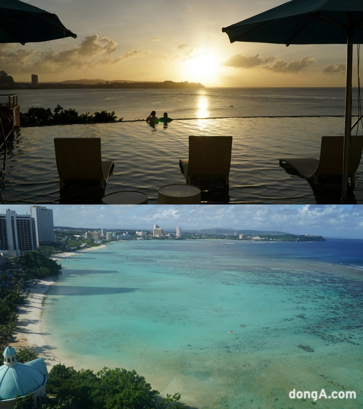 특히 연인들에게 인기가 높다. 아래 사진은 ‘롯데호텔 괌’의 타워윙에서 바라본 투몬비치. 괌|김재범 기자 oldfield@donga.com