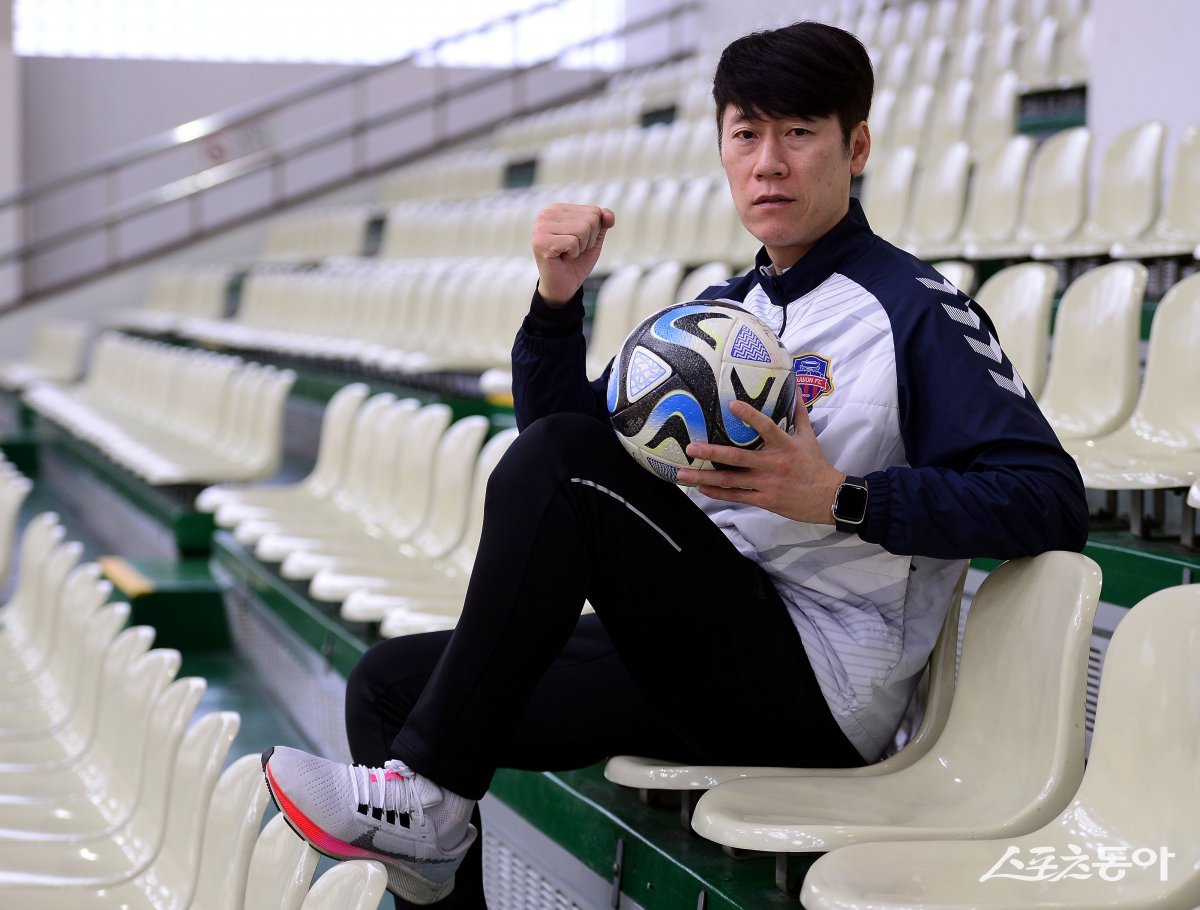 프로축구 수원FC가 9일 경기도 수원 경기도인재개발원 실내체육관에서 2024시즌을 향한 소집훈련을 가졌다. 수원FC 김은중 감독이 카메라를 향해 포즈를 취하고 있다.