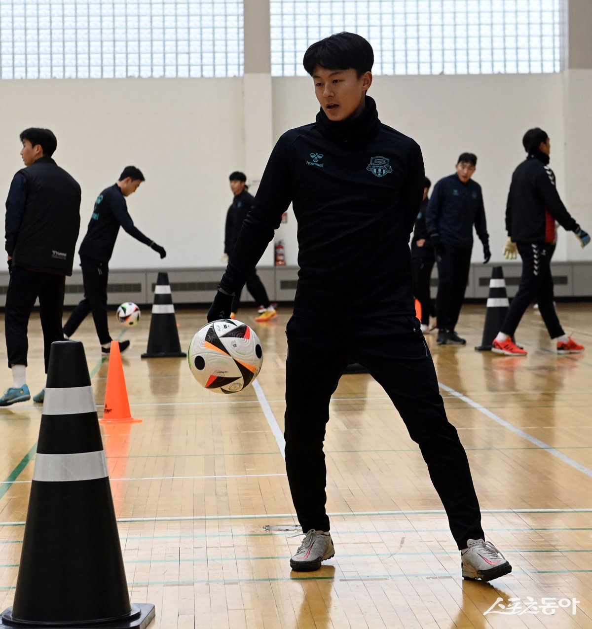 프로축구 수원FC가 9일 경기도 수원 경기도인재개발원 실내체육관에서 2024시즌을 향한 소집훈련을 가졌다. 수원FC 이승우가 훈련을 펼치고 있다.