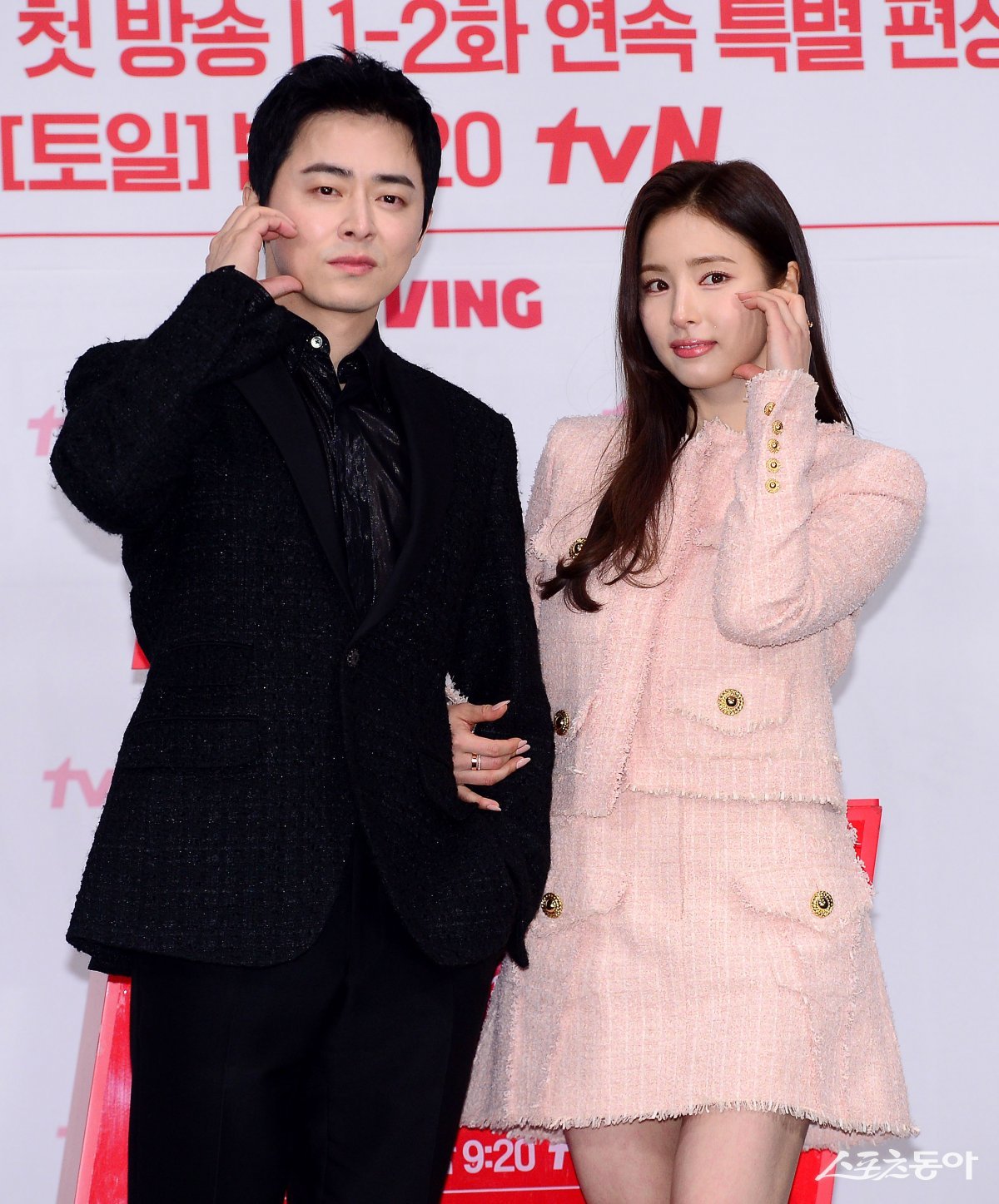 배우 조정석과 신세경이 16일 서울 구로구 라마다 신도림호텔에서 열린 tvN 새 토일드라마 ‘세작, 매혹된 자들’ 제작발표회에 참석해 포즈를 취하고 있다.