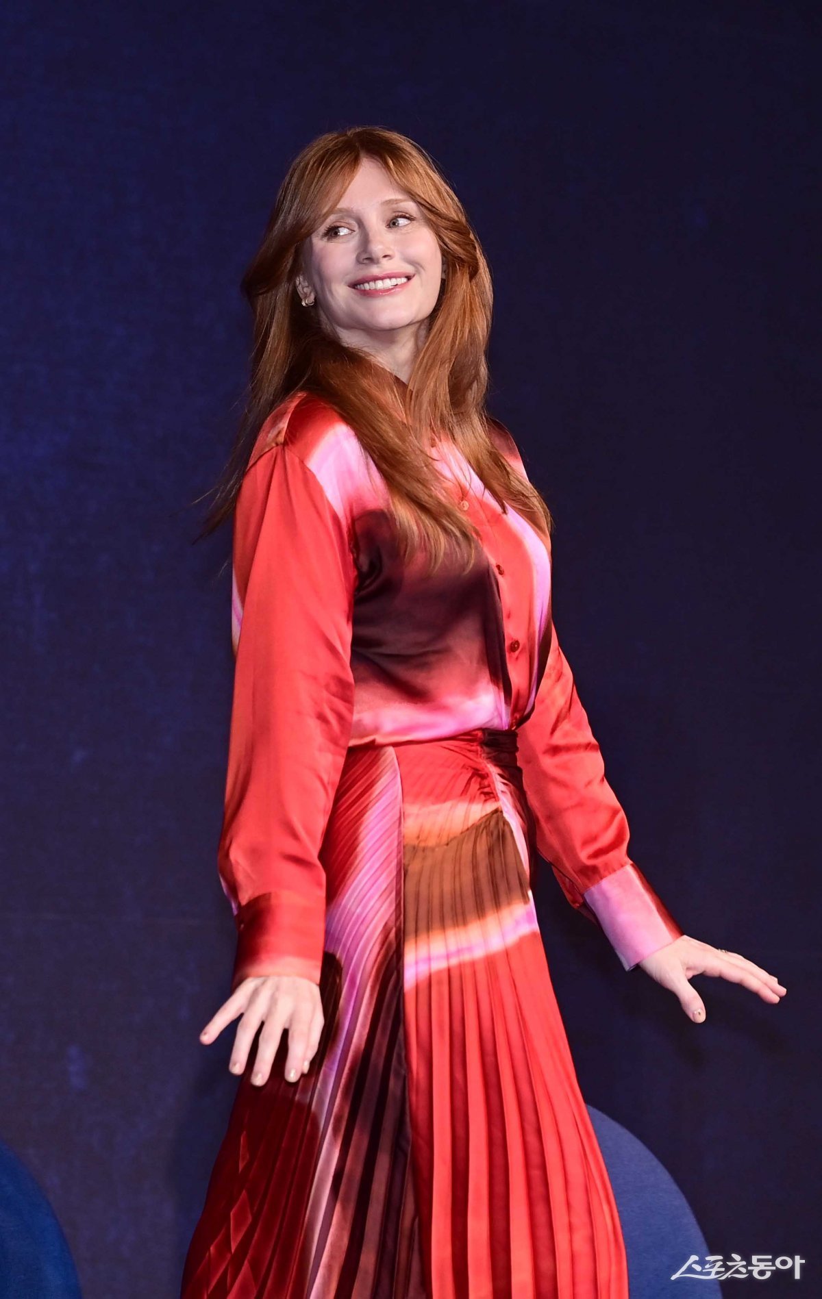 배우 브라이스 달라스 하워드가 18일 서울 종로구 당주동 포시즌스호텔 서울에서 열린 영화 ‘아가일’ 내한 기자간담회에서 포즈를 취하고 있다.