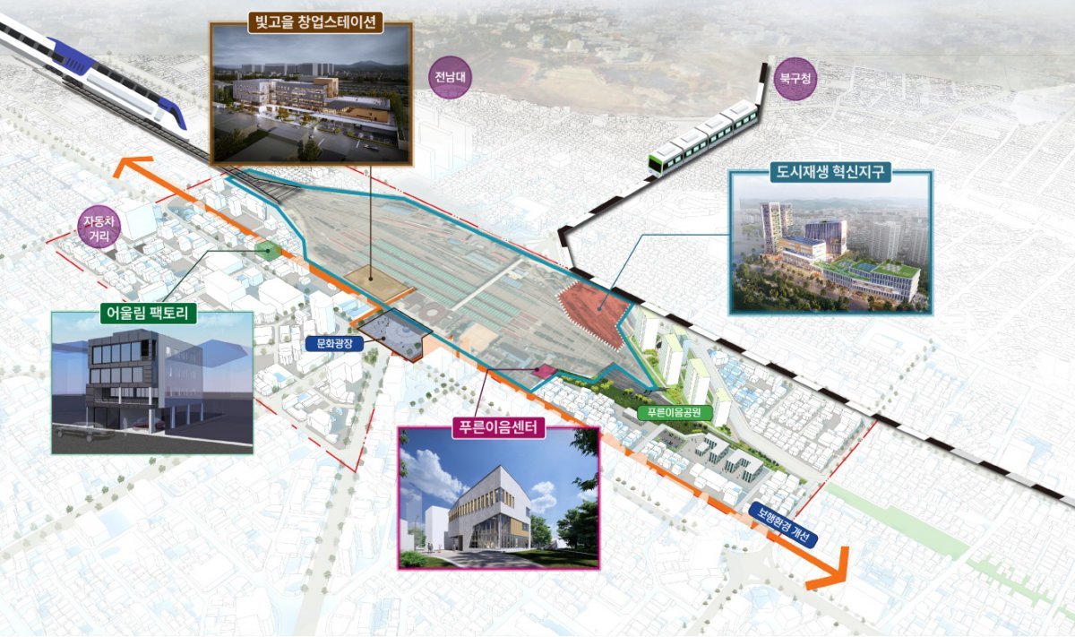 광주시는 광주역 유휴부지에 경제적 파급력이 높은 창업지원 기반시설(인프라)을 구축해 사회적 여건이 개선되면 쇠퇴한 도심에 경제적·문화적 재생을 통한 도시 자생력을 갖출 수 있을 것으로 내다보고 있다.