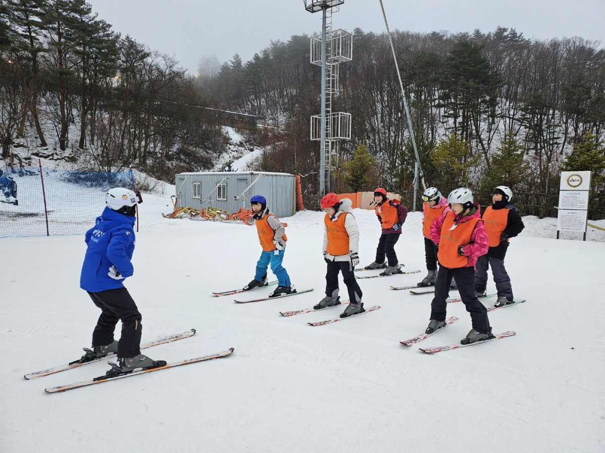 스키교실에는 관내 초등학교 4학년-6학년 학생 40여 명이 참가해 장비를 올바르게 착용하고, 안전교육과 스키의 기본 기술을 배우며 즐거운 시간을 보냈다.