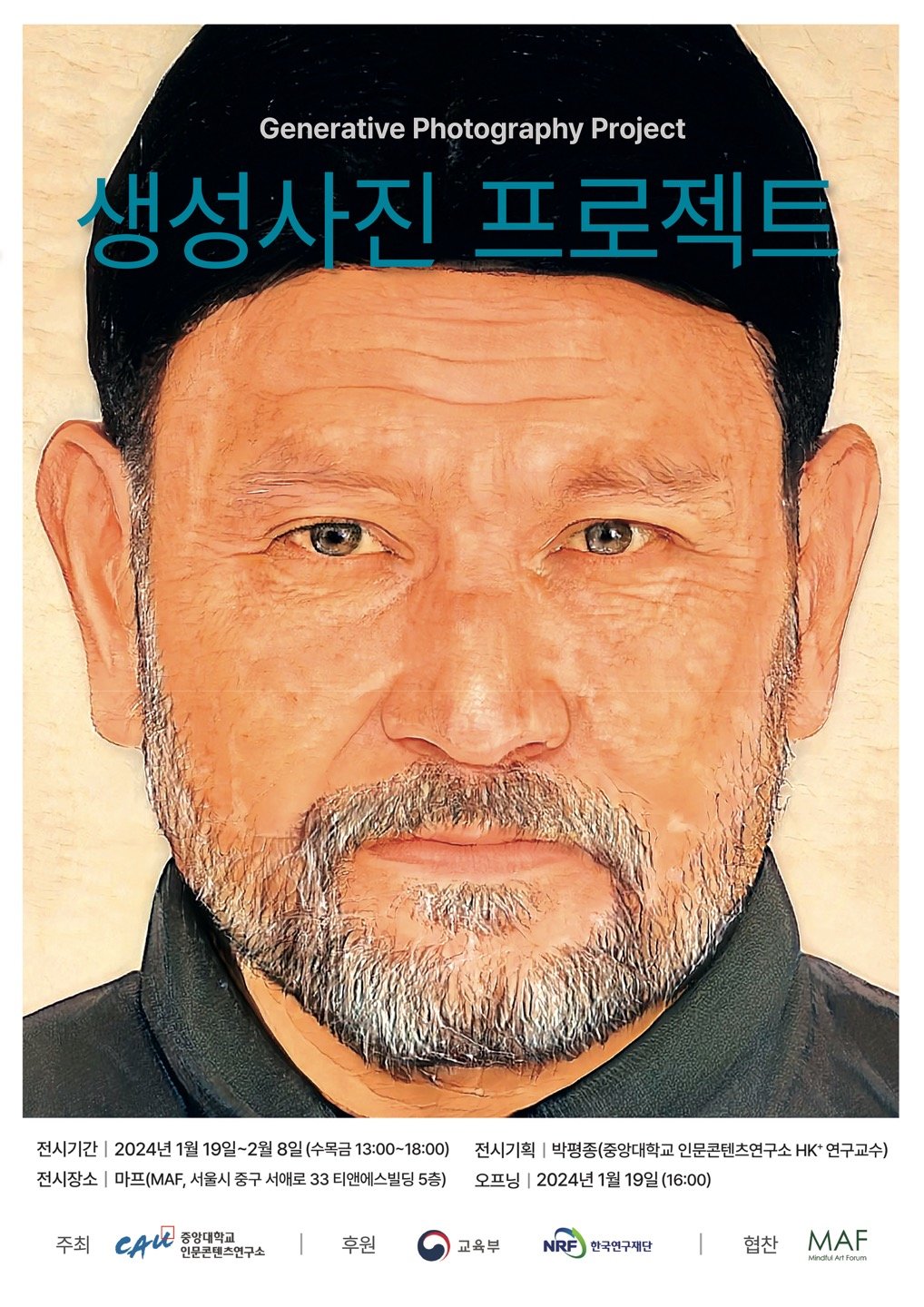 ‘생성사진 프로젝트’는 인공지능이 초상화를 사진 이미지로 합성하는 작업을 통해 과거 인물의 사실적 시각적 경험과 효과를 제공한다. 그러나 생성 인공지능의 산출 이미지는 학습 데이터의 총합 평균치로 이미 결정된 알고리즘의 구조적 한계점도 존재함을 함께 고민하고 있다. 특히 생성 이미지는 잠재적으로 획일적이며 결국 인간의 개별 특질을 사라지게 해 학습 데이터 평균치로 대체함을 우리에게 보여준다.