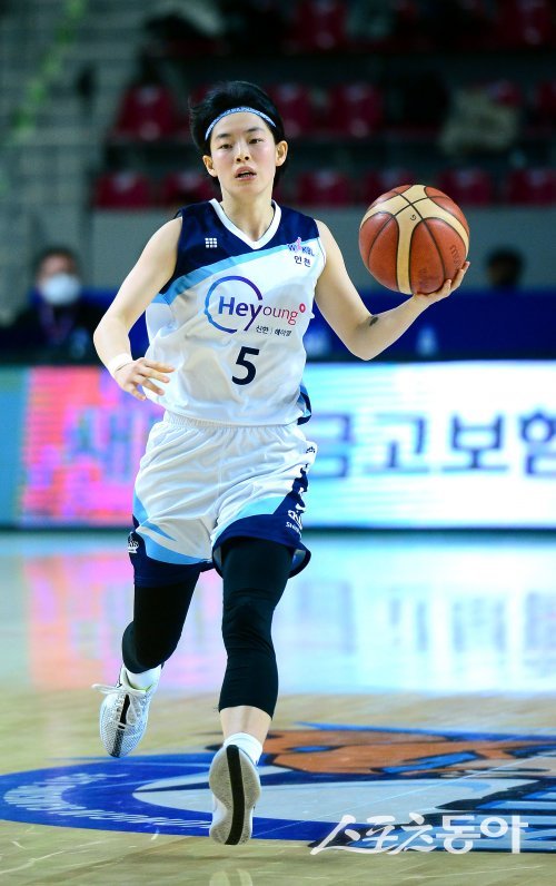 특히 후반기 4경기에서 보여준 활약이 눈에 띈다. 이 기간 평균 26분35초를 뛰며 9점·4.5리바운드·5.5어시스트로 제 몫을 100% 해냈다. 24일 부천 하나원큐와 홈경기에는 올 시즌 처음 선발출전해 29분38초를 소화하며 8점·6어시스트를 기록했다. 최근 꾸준한 활약 덕분에 베테랑 가드 이경은(37)의 체력 부담도 덜게 되니 그야말로 일석이조다.