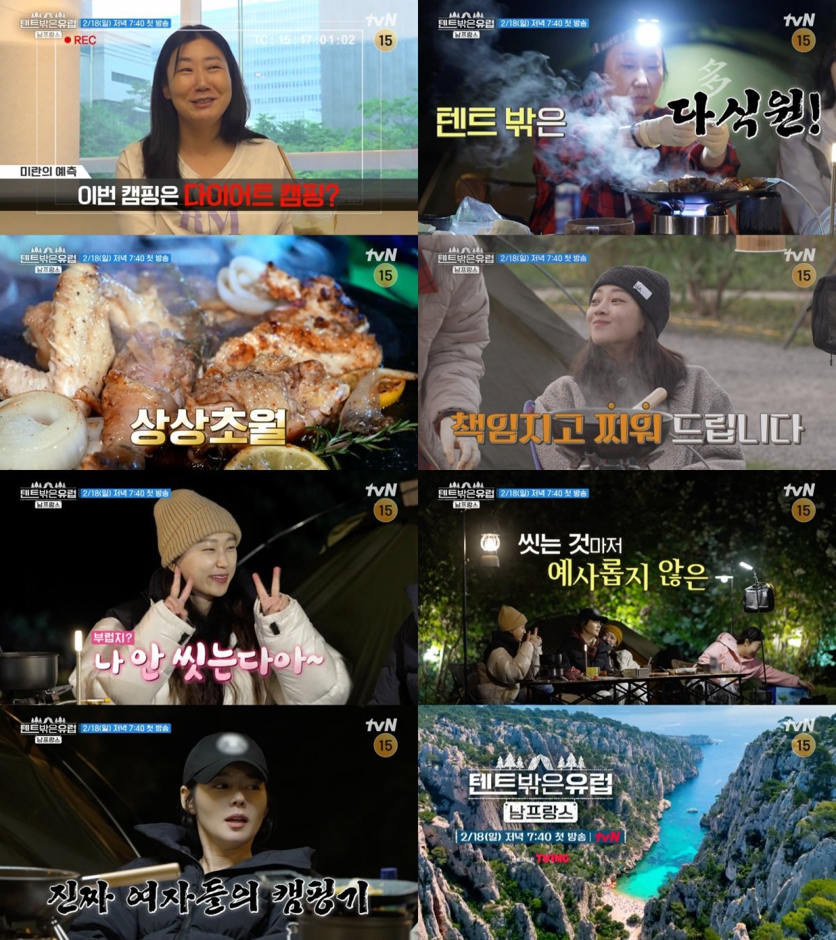 이어 \'텐트 밖은 다식(多食)원\'이라고 할 만한 전무후무한 캠핑 코스 요리의 향연이 펼쳐지며 시선을 압도하고 있다. 특히 캠핑 요리 고수 라미란이 고퀄리티 음식으로 미식의 나라 남프랑스에서 캠핑 클래스를 제대로 보여준다는 전언이다. 캠핑 요리 끝판왕답게 현지 식재료를 활용해 감태 파스타부터 꼬마김밥, 닭볶음탕, 배추전, 황태 미역국, 비빔 파스타, 제육볶음, 잡채 등 익숙한 듯 색다른 퓨전 요리를 만들어낸다고.