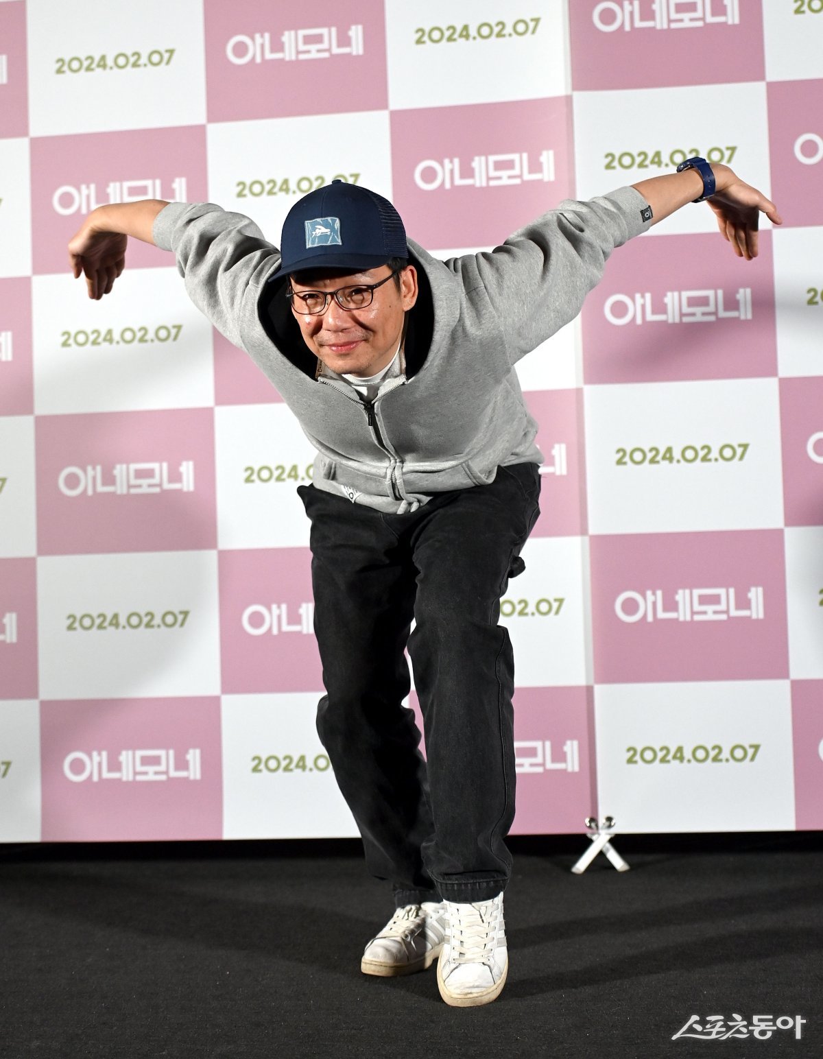 정하용 감독이 25일 서울 용산구 CGV용산아이파크몰점에서 열린 영화 ‘아네모네’ 시사회에서 포토타임을 갖고 있다.