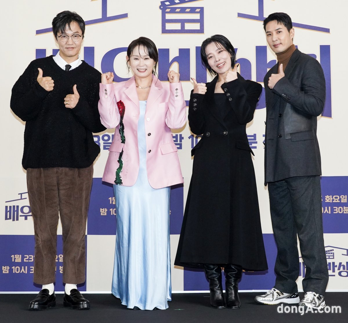 배우 조한철, 김선영, 차청화, 김지석이 22일 진행된 JTBC 신규 예능 프로그램 ‘배우반상회’ 제작발표회에서 포즈를 취하고 있다.
