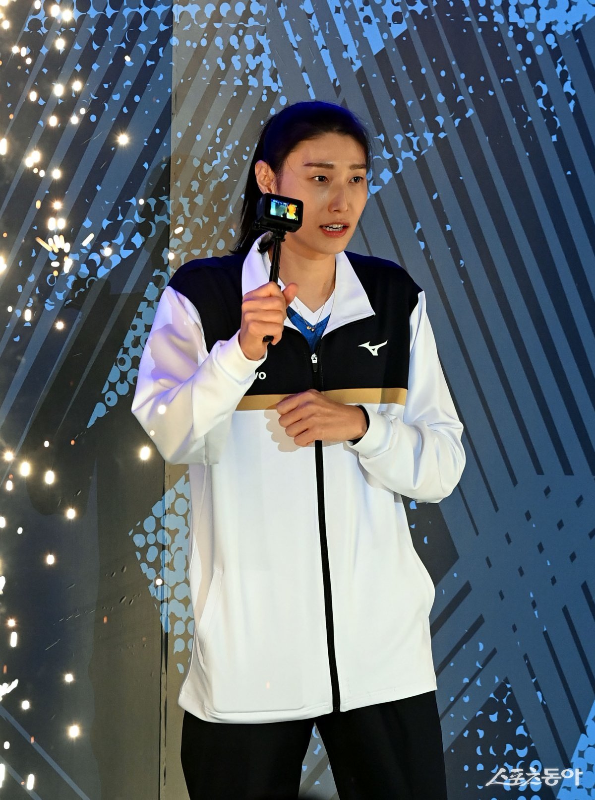 27일 인천 삼산월드체육관에서 ‘2023-2024 도드람 V리그 올스타전’ 경기가 열렸다. V-스타 김연경이 소개되며 포즈를 취하고 있다.