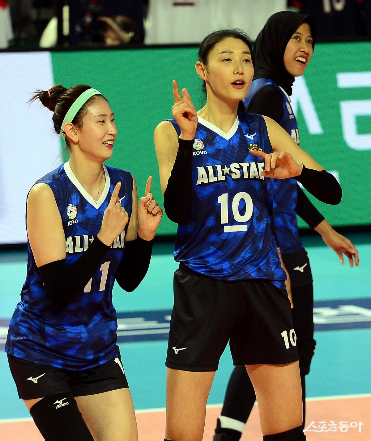 27일 인천 삼산월드체육관에서 ‘2023-2024 도드람 V리그 올스타전’ 경기가 열렸다. V-스타 김수지와 김연경이 댄스를 펼치고 있다.