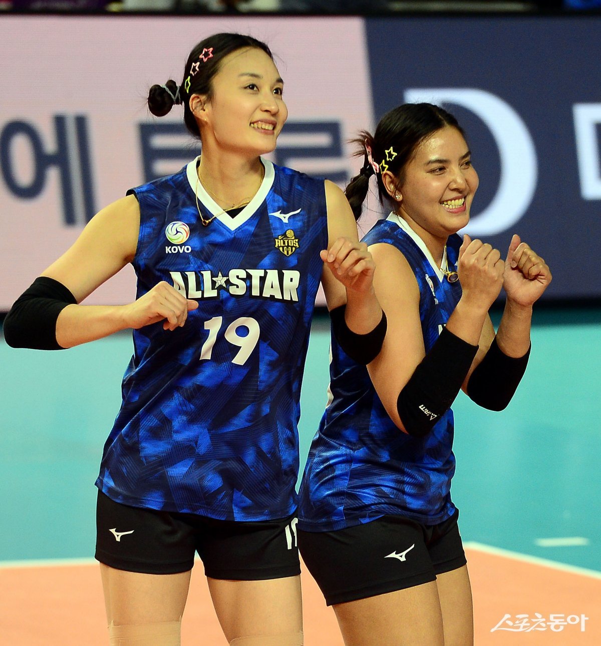 27일 인천 삼산월드체육관에서 ‘2023-2024 도드람 V리그 올스타전’ 경기가 열렸다. V-스타 표승주와 폰푼이 댄스를 펼치고 있다.
