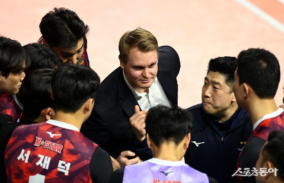 27일 인천 삼산월드체육관에서 ‘2023-2024 도드람 V리그 올스타전’ 경기가 열렸다. -스타 토미 틸리카이넨 감독이 작전을 지시하고 있다.