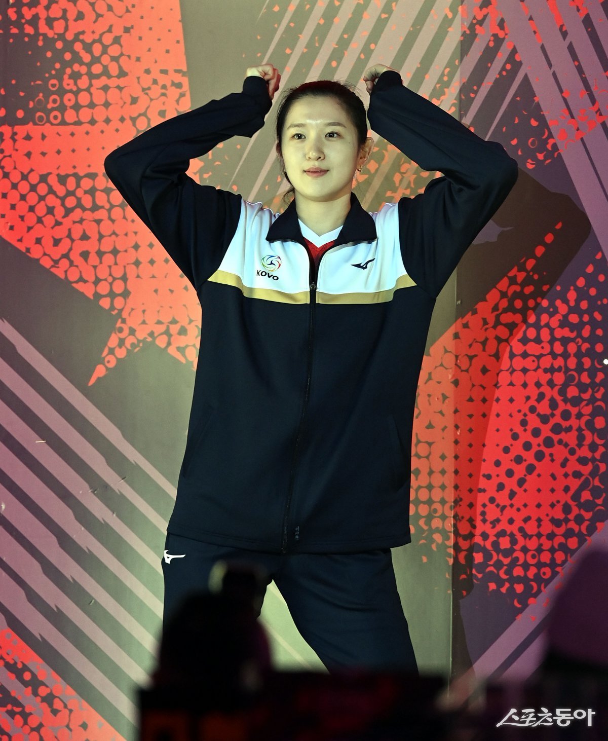 27일 인천 삼산월드체육관에서 ‘2023-2024 도드람 V리그 올스타전’ 경기가 열렸다. K-스타 이다현이 소개되며 포즈를 취하고 있다.
