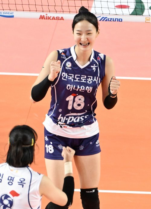 미들블로커(센터) 김세빈은 올 시즌 신인드래프트 전체 1순위로 도로공사에 지명돼 프로 유니폼을 입었다. 키 187㎝의 좋은 신체조건에 김 단장과 김남순 전 여자배구대표 공격수의 딸로 유명세를 탔다. 이어 당당히 주전 자리를 꿰차고 팀이 치른 25경기 94세트 중 23경기 87세트에 출전해 준수한 세트당 블로킹(0.563개·7위) 수치를 보이며 ‘김철수와 김남순의 딸’이 아닌 ‘한국여자배구의 미래’임을 입증했다.