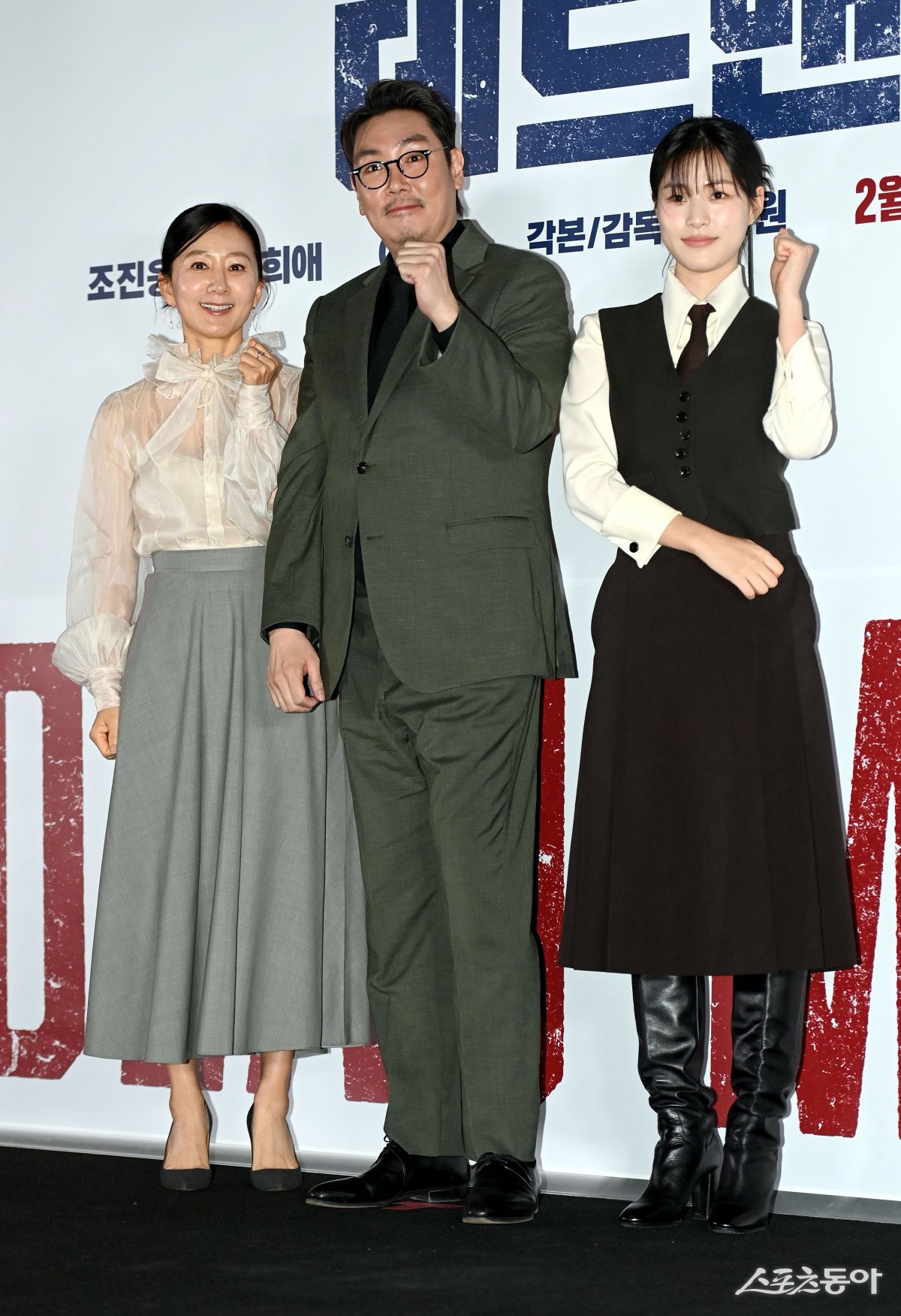 배우 김희애, 조진웅, 이수경이 29일 서울 강남구 메가박스 코엑스에서 열린 영화 ‘데드맨’ 시사회에서 포토타임을 갖고 있다.