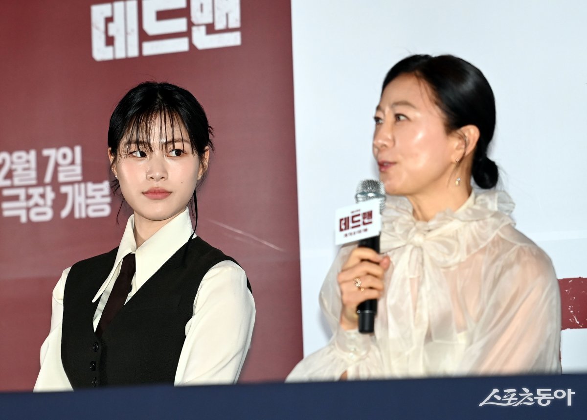 배우 이수경이 29일 서울 강남구 메가박스 코엑스에서 열린 영화 ‘데드맨’ 시사회에서 김희애를 바라보고 있다.