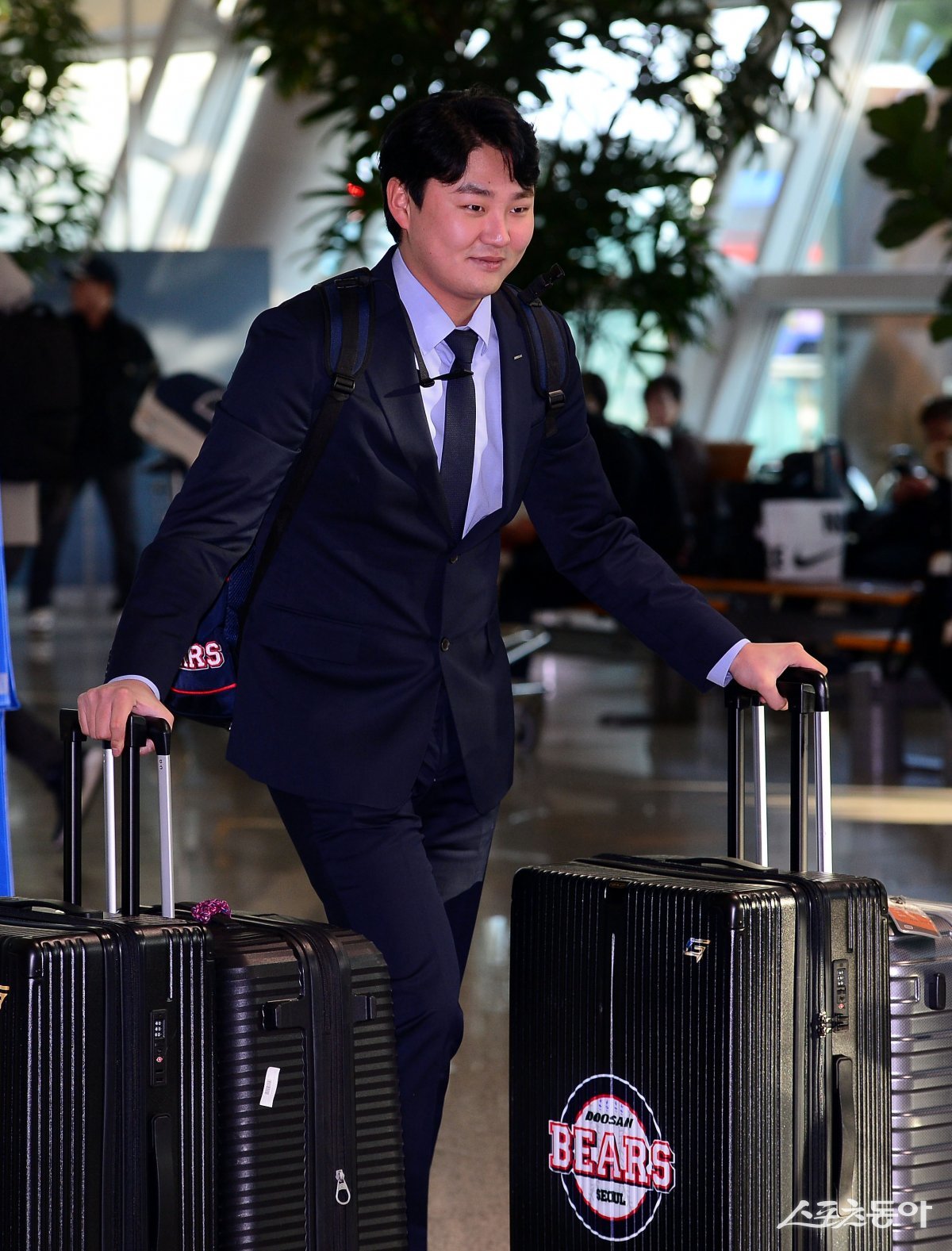 프로야구 두산 베어스가 29일 인천국제공항을 통해 스프링캠프 훈련지인 호주로 출국했다. 두산 정철원이 출국장으로 이동하고 있다.