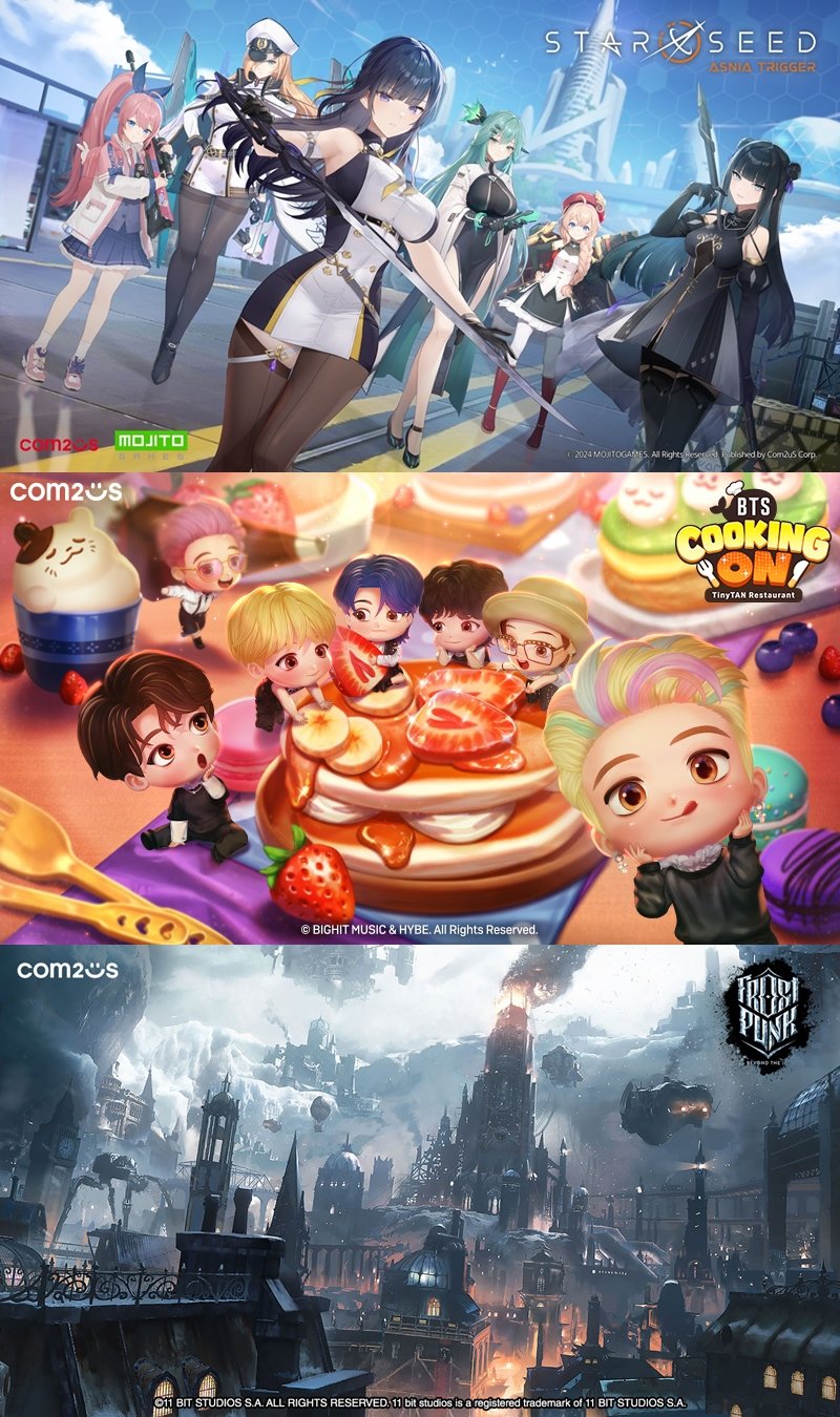 컴투스는 20년 이상 세계에서 여러 게임을 성공적으로 서비스해 온 글로벌 비즈니스 노하우와 네트워크를 바탕으로, 유수의 글로벌 게임 개발사들과 협업을 강화하며 퍼블리싱 사업을 적극 추진한다는 계획이다. 이 같은 변화와 도전의 시작을 함께 할 신작 ‘프로스트펑크: 비욘드 더 아이스’, ‘BTS쿠킹온: 타이니탄 레스토랑’, ‘스타시드: 아스니아 트리거’도 소개했다.