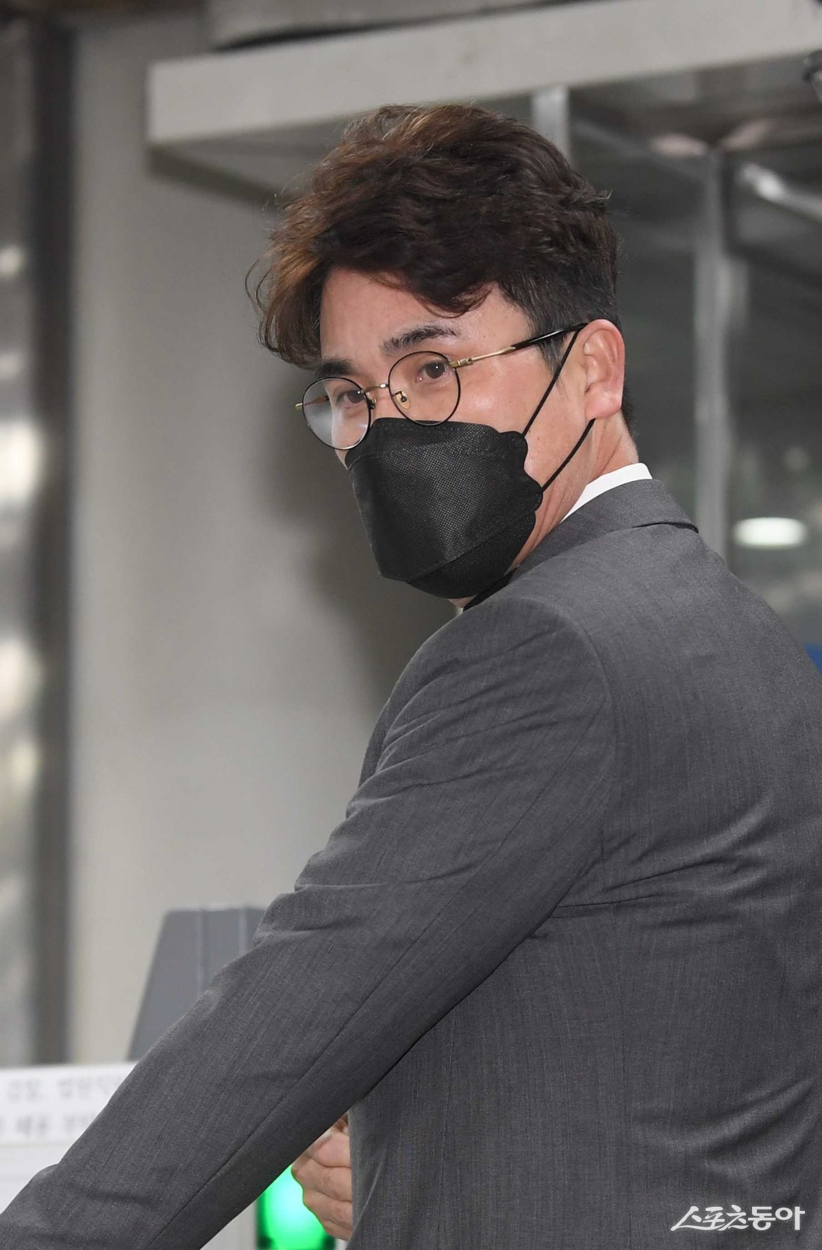KIA 타이거즈 장정석 전 단장이 30일 서울 서초구 서울중앙지방법원에서 배임수재 등 혐의로 영장실질심사에 출석하고 있다.