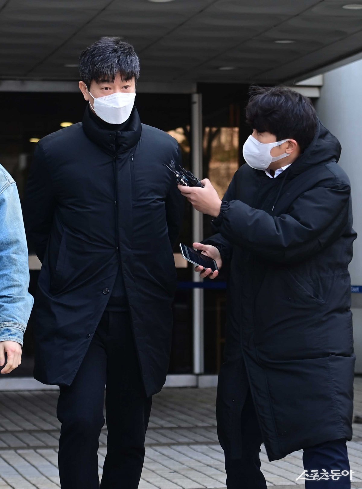 KIA 타이거즈 김종국 전 감독이 30일 서울 서초구 서울중앙지방법원에서 배임수재 등 혐의로 영장실질심사를 마친 후 법원을 나서고 있다.