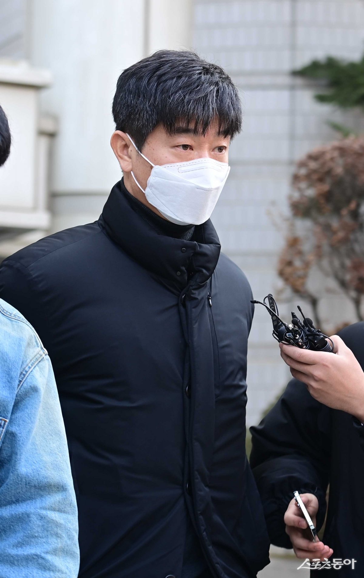 KIA 타이거즈 김종국 전 감독이 30일 서울 서초구 서울중앙지방법원에서 배임수재 등 혐의로 영장실질심사를 마친 후 법원을 나서고 있다.
