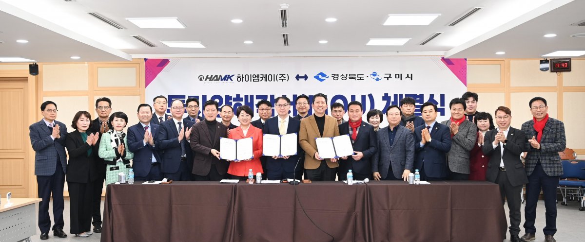 구미시⇔경상북도⇔하이엠케이㈜ 투자양해각서 체결…하이엠케이 750억 원 투자
