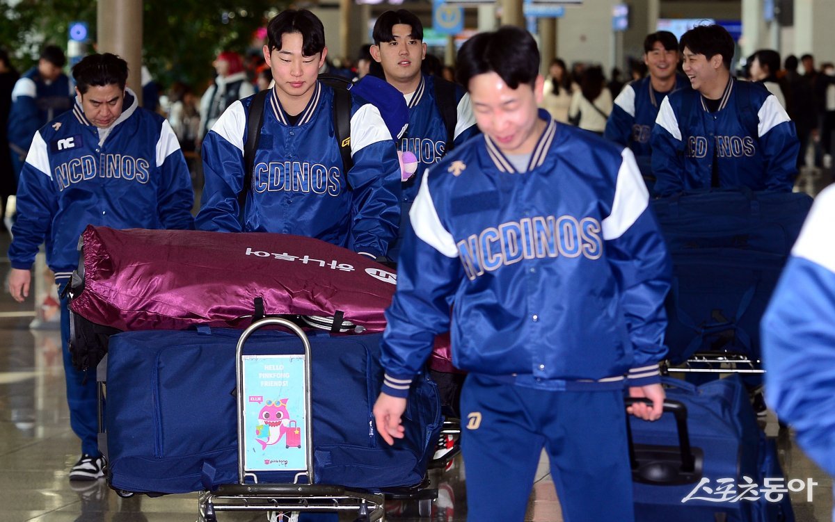 프로야구 NC 다이노스가 30일 인천국제공항을 통해 스프링캠프 훈련지인 미국으로 출국했다. NC 선수들이 출국장으로 이동하고 있다.